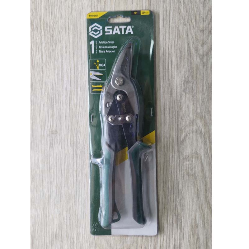 La Tijera para Lámina SATA ST93101ST de 10 pulgadas con corte izquierdo, también conocida como tijera de aviación izquierda, está diseñada para realizar cortes precisos en lámina metálica y acero delgado.